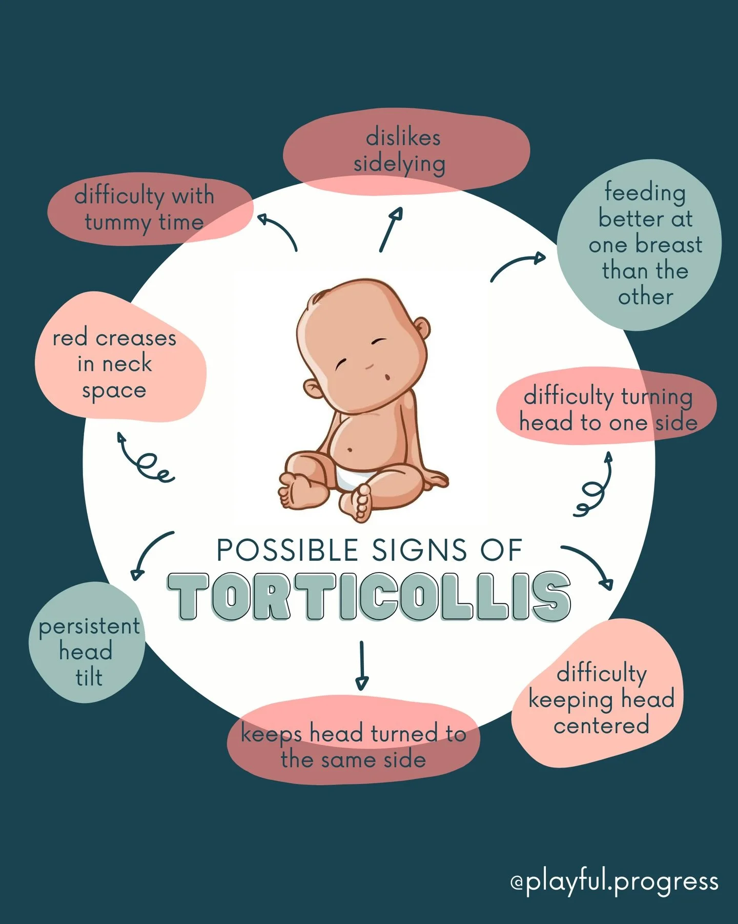If you are noticing a head turn preference, early intervention is vital for the most successful outcomes. It is important that your baby learns early on in their development about all the amazing ways that their body can move. Symmetrical posture and movement is so important for optimal achievement of motor milestones.