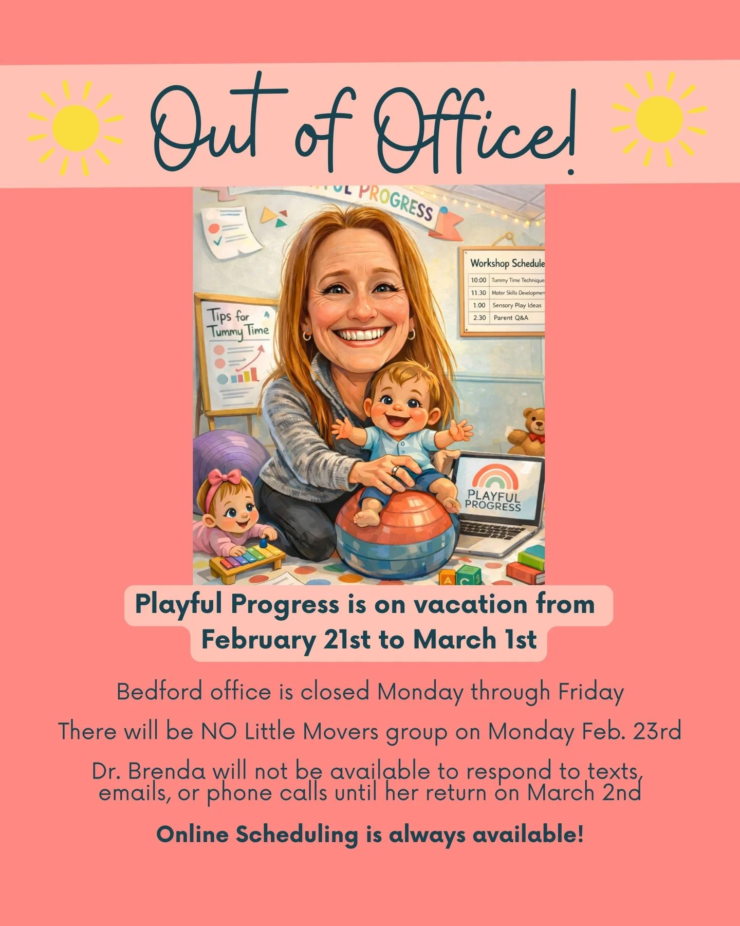 Make Monday Morning you favorite time of the week! Dr. Brenda hosts weekly motor play groups for infants 0-6 months (Tummy Time Workshop) and 6 months & up (Little Movers Workshop) where she reviews motor milestones, provides tips & tricks for success, and answers your questions. Come be part of our community!